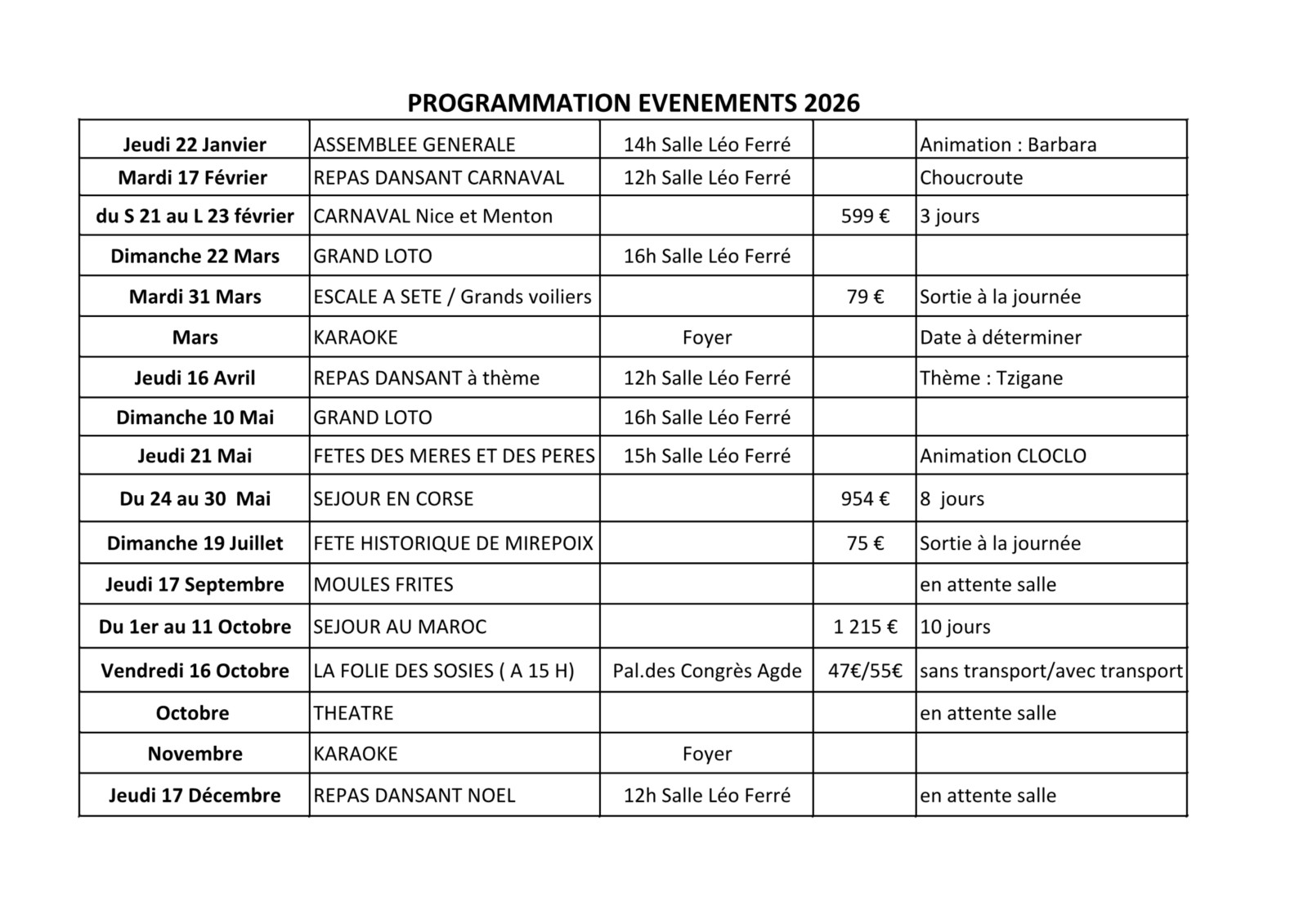 Evènements 2025